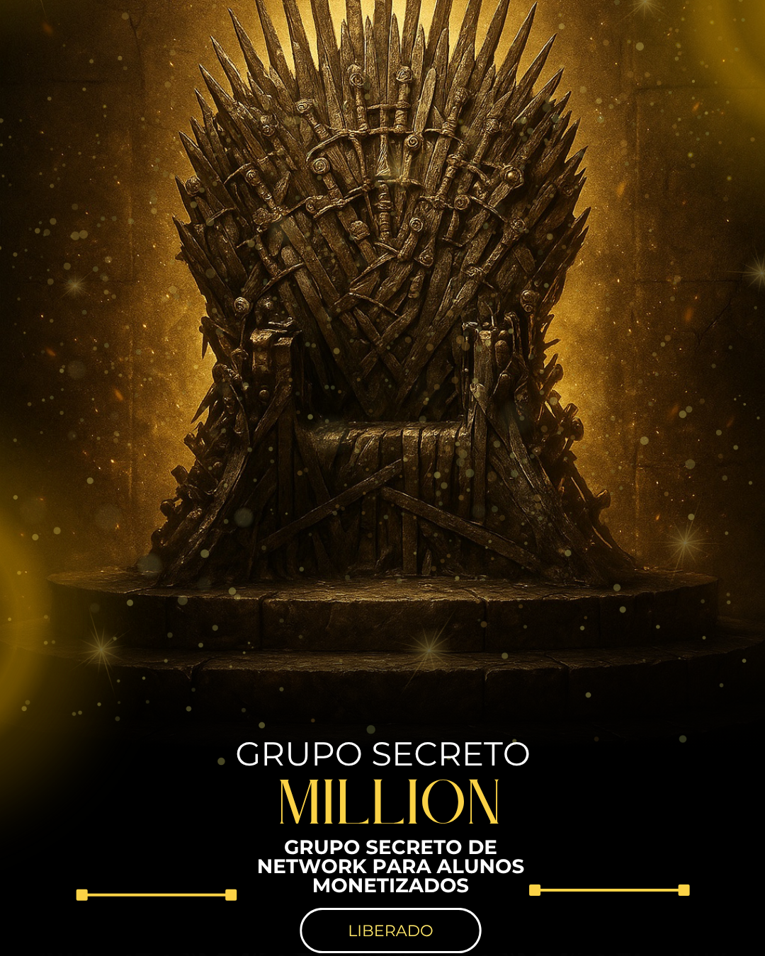 O Million é o salão secreto dos conquistadores do YouTube. Um grupo fechado apenas para alunos já monetizados, onde o networking é de alto nível.