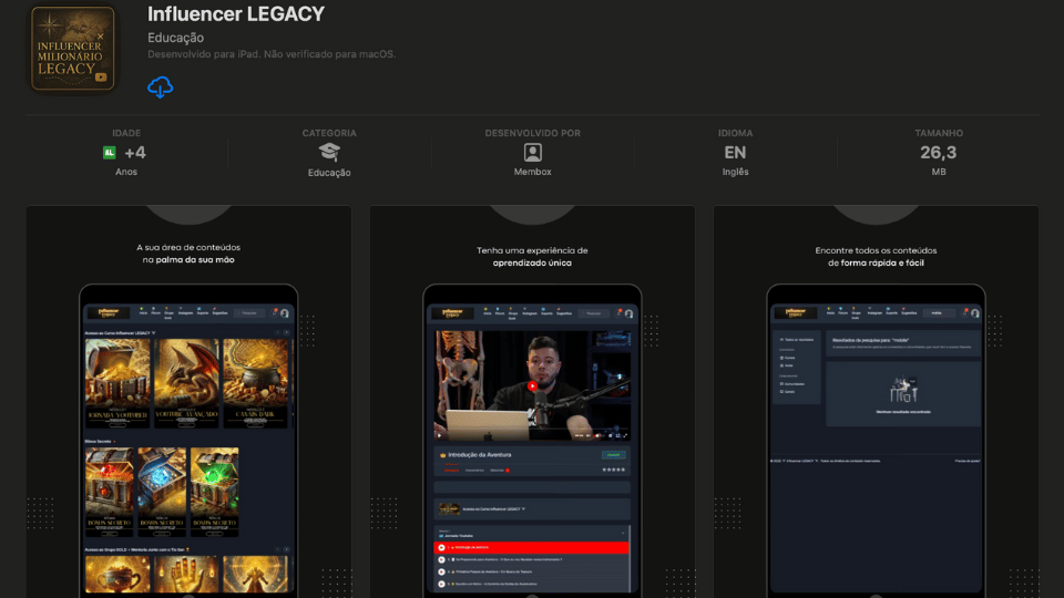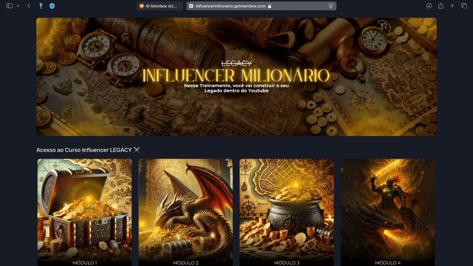 Esse não é mais um desses cursos que tem por aí com 10% do conteúdo ensinando a fazer uma “graninha” extra na internet com “hacks” de como comprar passagens baratas e ficar em hostels. O Influencer Milionário Legacy é um treinamento com 80% de conteúdo sobre como você pode construir um império milionário e 20% sobre como você pode automatizá-lo!